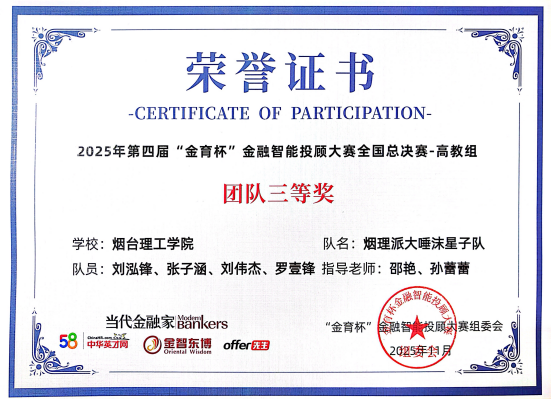 近日,2025年第四届“金育杯”金融智能投顾大赛全国总决赛(高教组)圆满落幕。本次赛事由“金育杯”金融智能投顾大赛组委会主办,联合当代金融家、金智东博等专业机构提供支持,是全国金融智能投顾领域的高水平赛事,吸引了全国各高校的优秀会计金融专业队伍同台竞技。