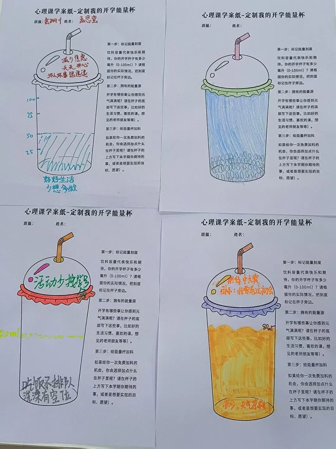“定制我的开学能量杯”绘画环节,在创意绘画的过程里,同学们悄然梳理着对新学期的憧憬与规划,把抽象的“心理能量”具象为可视的画面,在艺术表达中完成了一次自我觉察与心灵赋能。