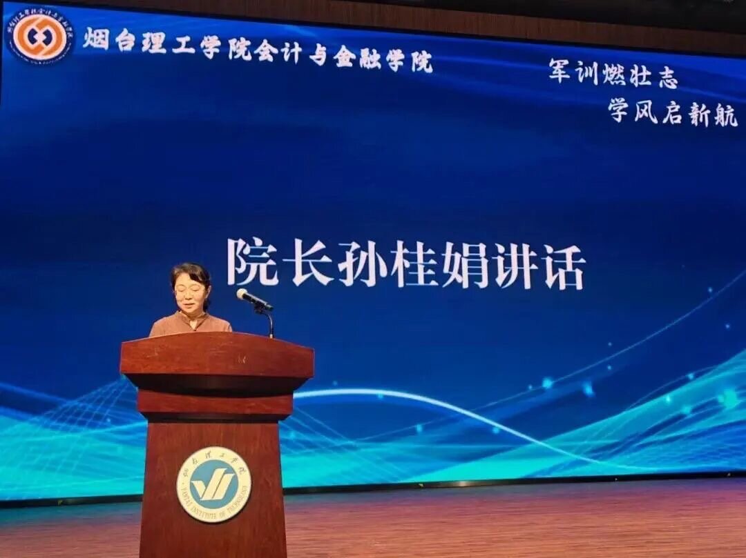 会计与金融学院院长孙桂娟向2025级新生致以最热烈的欢迎,同时殷切期望同学们把握好学习时光,不负青春韶华,把专业所学融入数字中国的建设浪潮,用金融智慧助力中小企业的成长壮大,以诚信品格守护市场秩序的清澈底色。