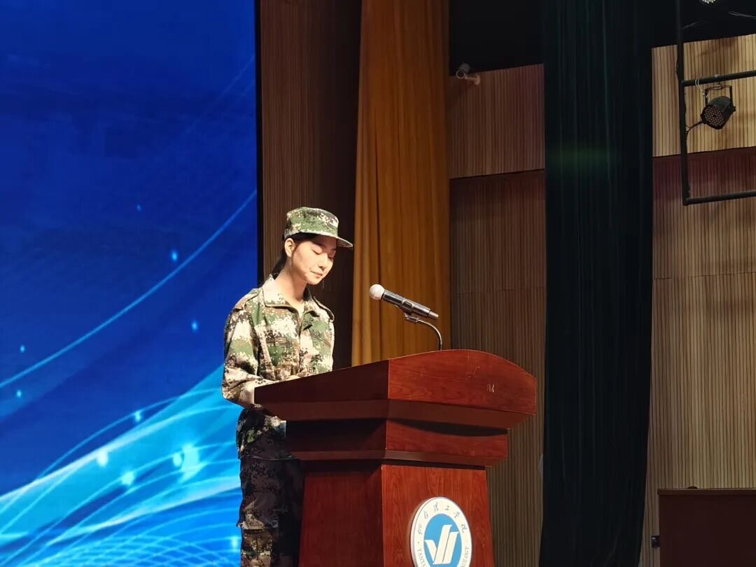 新生代表高子珺表达了对大学生活的期盼,大学是一次青春的远征,她将珍惜这来之不易的缘分,在合作中学会倾听,在竞争中懂得尊重,在分享中收获双倍的快乐,在困境中伸出有力的臂膀,奔赴新的征程。