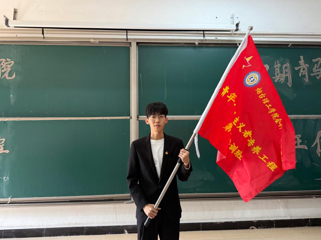 团总支副书记曹春蕾为第五期青马工程骨干班授旗。