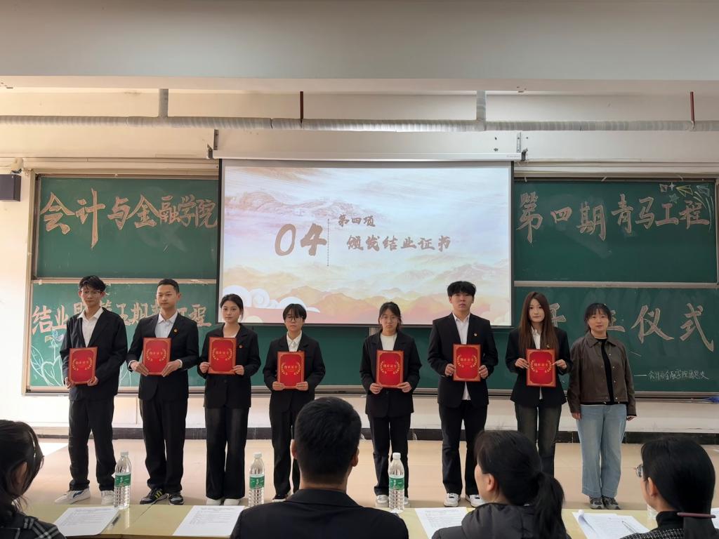团总支副书记曹春蕾为第四期青马工程学员颁发结业证书。