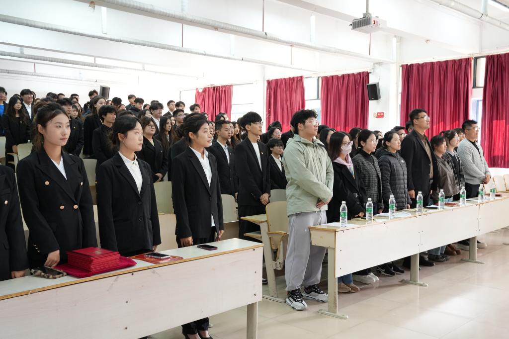 仪式伊始,全场肃立,全体起立奏唱国歌。伴随着雄壮激昂的《义勇军进行曲》,现场全体人员神情庄重,齐声高唱国歌。歌声嘹亮,汇聚着对祖国的崇高敬意与深切热爱;旋律激昂,激荡着每个人心中的爱国情怀与奋斗豪情。这一刻,庄严的氛围感染着现场的每一个人,展现了全体参会成员昂扬向上的精神风貌和团结一心的集体力量。