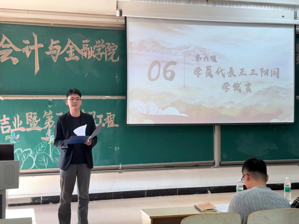 老生代表王正阳同学在发言中谈到第四期青马班的课程内容丰富,涵盖理论、实践、精神等多个方面,为学员搭建了一个全方位成长与进步的平台。他表示以“志”为先导,以“思”为中心,以“行”为方法,以“悟”为升华,做一名政治坚定、素质全面、模范担当、勇于创新的学员,今后将以更加饱满的热情与坚定的信念,投身于学习和实践中,为实现中华民族伟大复兴的中国梦贡献自己的青春力量!