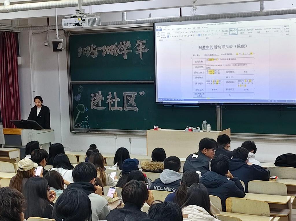 为推动“百万大学生进社区”活动有序、高效开展,引导各团支部在基层实践中锤炼专业能力与社会责任感,10月22日,会计与金融学院于一教206举办2025-2026学年“百万大学生进社区”动员大会,会计与金融学院2024级、2025级各班班长、团支部书记参加本次会议。