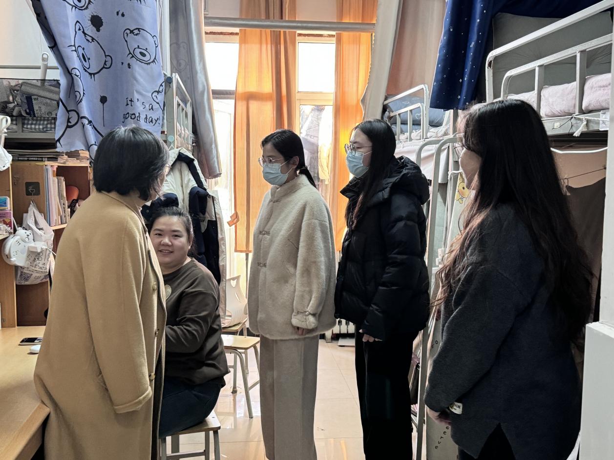 走访过程中,老师们以“一站式”社区育人要求为指引,既围绕学业发展、职业规划、人际交往等学生关切问题展开深入洽谈;又聚焦宿舍安全与环境建设,细致排查消防安全、违规电器使用等安全隐患,引导同学们养成整洁有序的生活习惯,筑牢宿舍安全防线,全方位守护学生成长生活环境。
