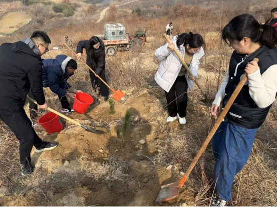 3月12日,会计与金融学院党总支副书记褚亮辉、副院长郑秀丽、刘莹,带领教师党员代表、全体辅导员、退役大学生士兵及学生代表,共赴牟平区龙泉镇马家都村,开展“财金携春添翠,绘就美丽乡村”义务植树活动。活动现场,师生们分工协作,挥锹培土、扶苗浇水,为山野增添盎然绿意。学院领导率先垂范,亲手示范植树技巧,向同学们讲解树苗养护知识,叮嘱大家既要深耕专业领域,更要践行生态责任,将责任与担当融入每一次躬身实践,以实干之力助力美丽乡村建设。
